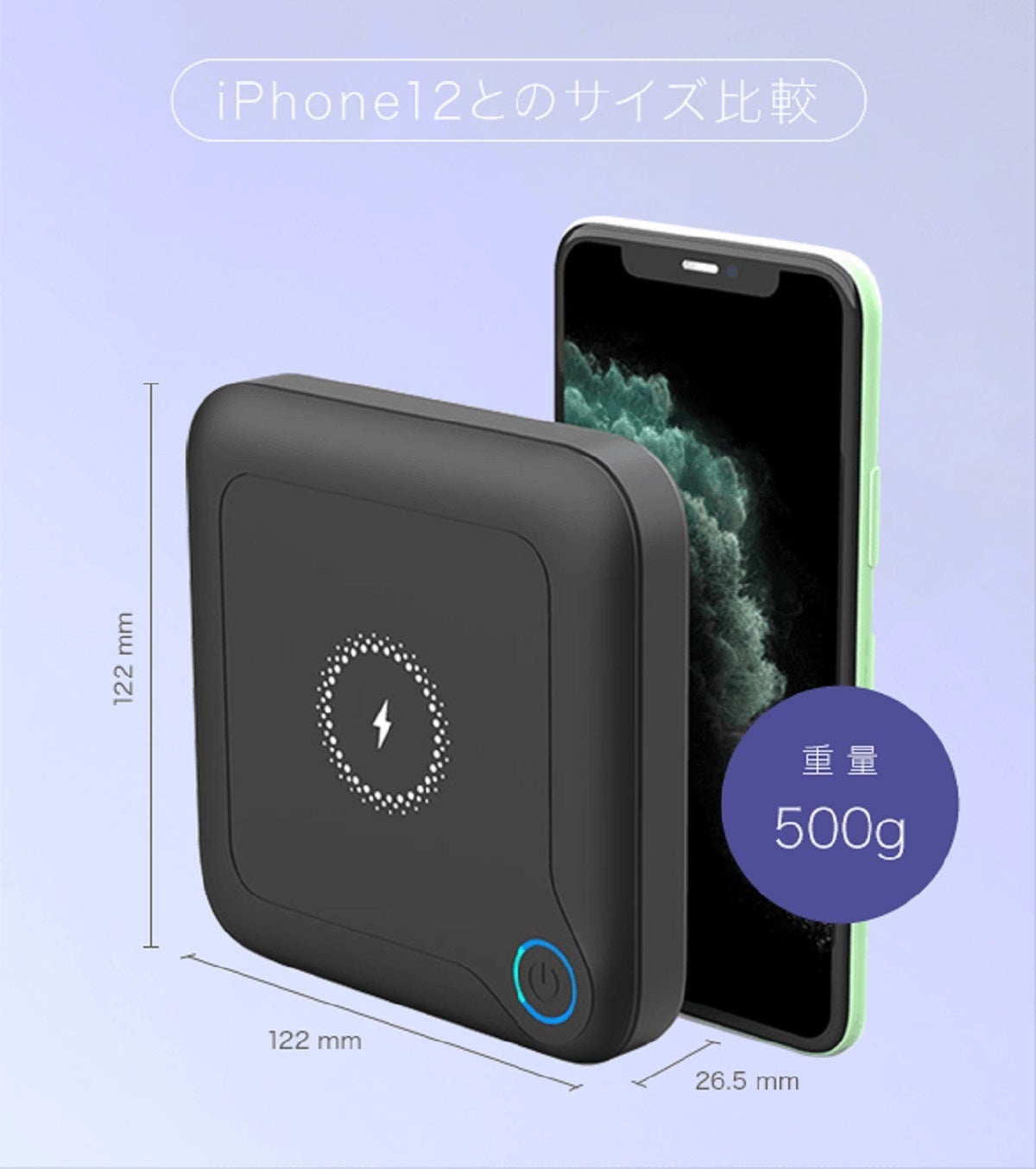 GP12では、iPhone,アンドロイドのスマートフォン、その他Qiワイヤレス充電機能が付いたタブレットやワイヤレスイヤホンなど、マルチデバイスを充電できます。最大10Wでチャージが可能です。