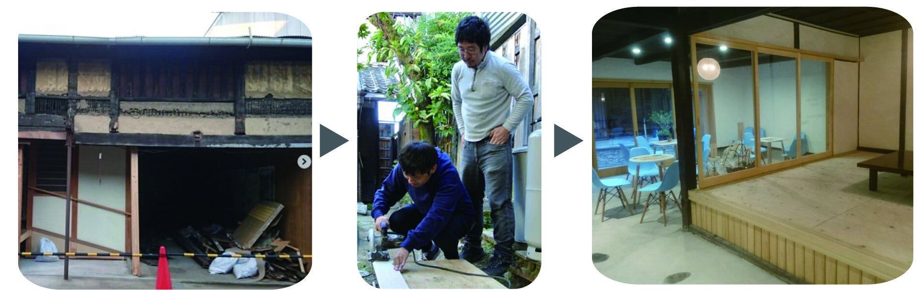 大学院では、岐阜県にある空き家2軒を、地元の学生が集うコミュニティスペースやカフェに改修してきました。