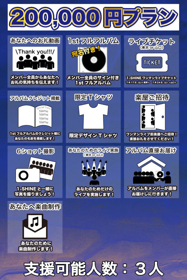 この度は僕たち1-SHINEは初めてのクラウドファンディングをさせて頂くことになりました!