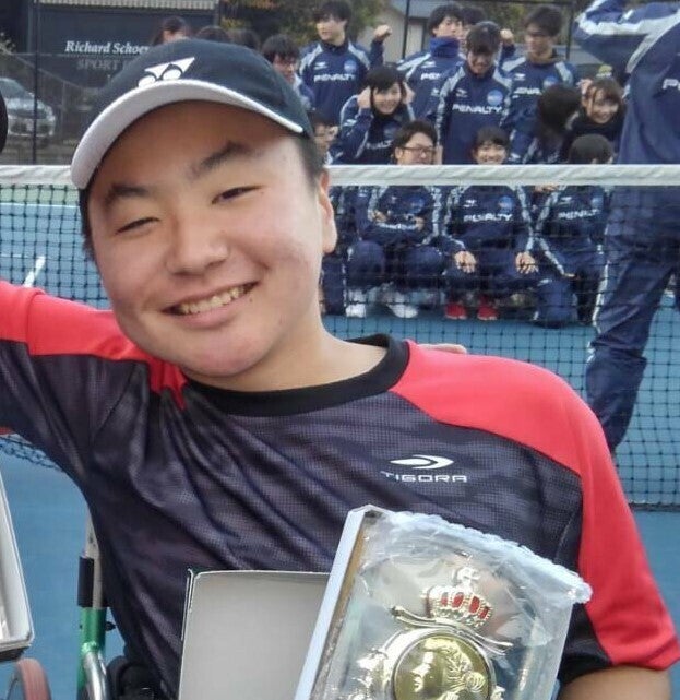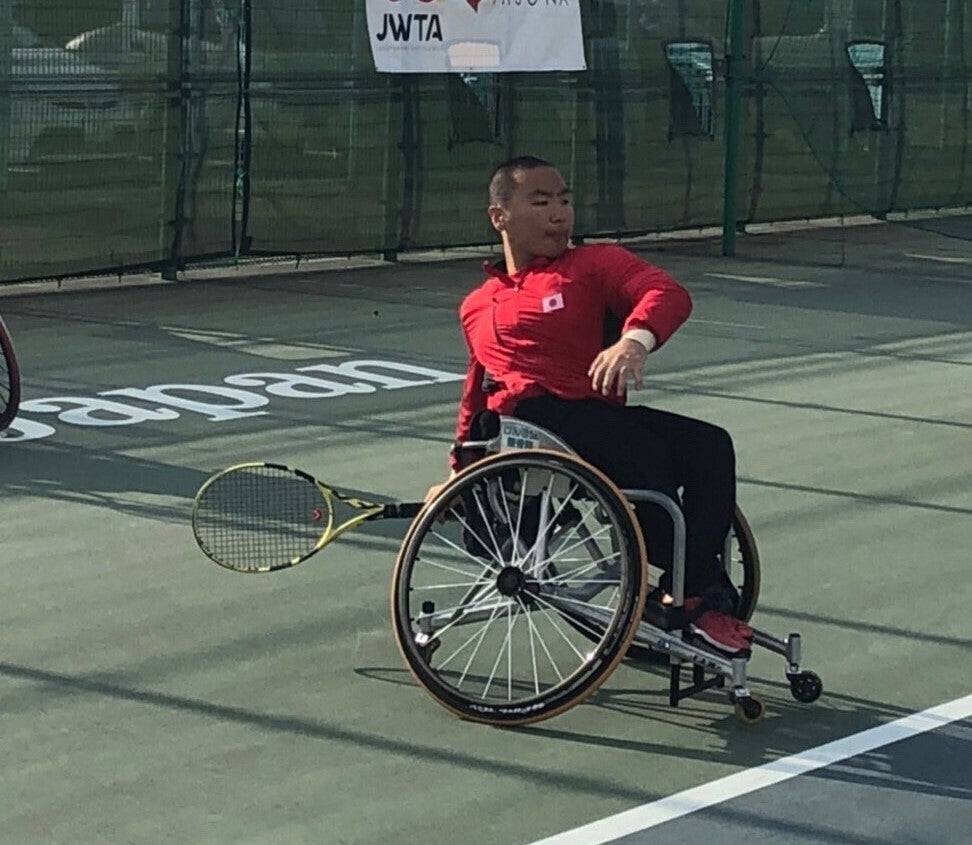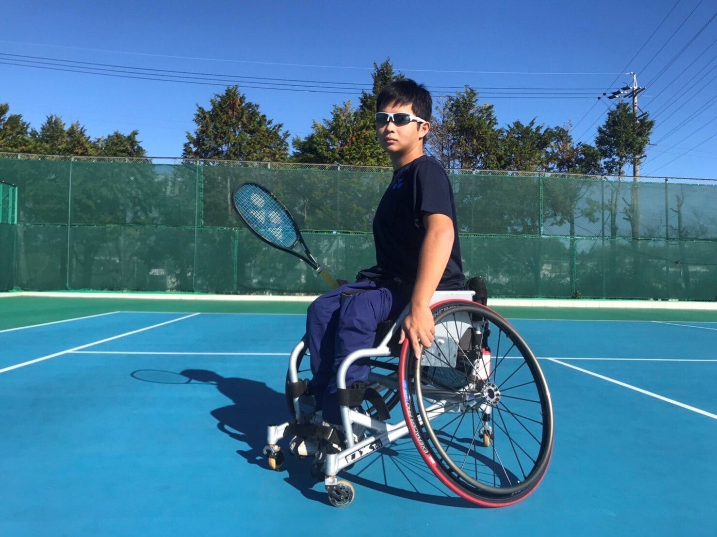 僕は9歳の時、左股関節に骨肉腫がみつかり人工股関節になりました。それまではサッカーをやっていましたが、大好きだったサッカーを諦め、代わりになる競技をということで車いすテニスに転向しました。始めた時から、僕と同じ9歳で車いす生活になった国枝慎吾選手が憧れであり目標です。