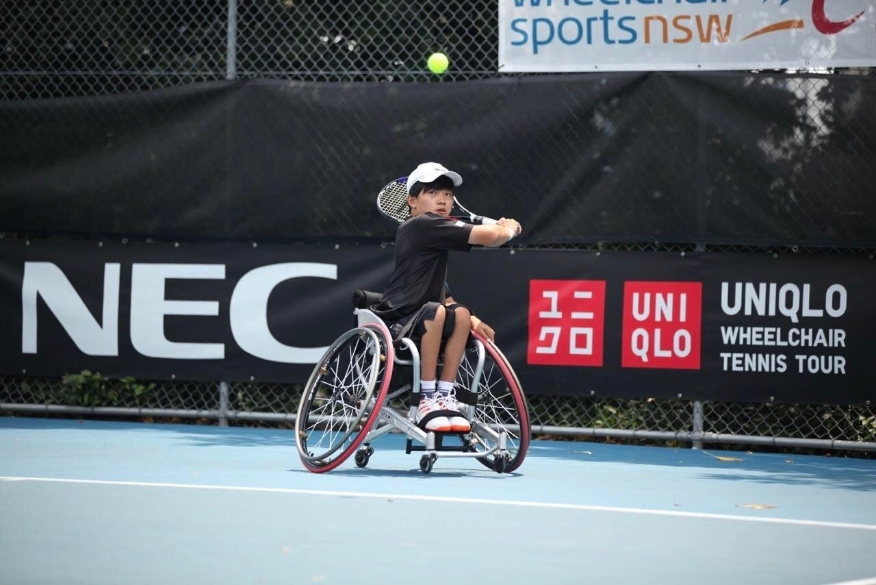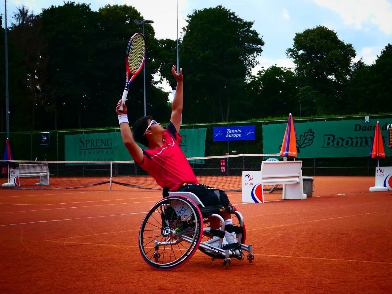 当時、麻痺性の左股関節脱臼の為手術をしましたが、体が拒否反応を起こして感染症となり、1年以上入院することになりました。入院が長くなるにつれ、何かスポーツをして体を動かしたほうが良いのではないかと思い、先生に相談して許可をもらい、車いすテニスの体験会に参加しました。とても楽しく、自分に合っていると感じたので、退院後はすぐに地元のテニス教室に通うようになり、体験会で知り合った貝吹コーチに指導を受けるようになりました。車いすテニスという競技を見つけてくれたお母さん、教えてくれている貝吹コーチ、そして応援してくれるみんなにはとても感謝しています。僕の活躍を通じて、周りの人に元気や勇気を与えたいと思っています。