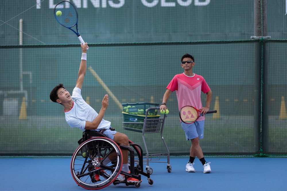 6月20日、助成事業2020年度採択者である車いすテニスの小田凱人さん(15歳)の練習を見学させていただきました。