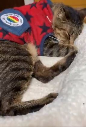 △犬鳴ダムの側溝に前足先が切断され血まみれで保護された猫のアンちゃんと代表