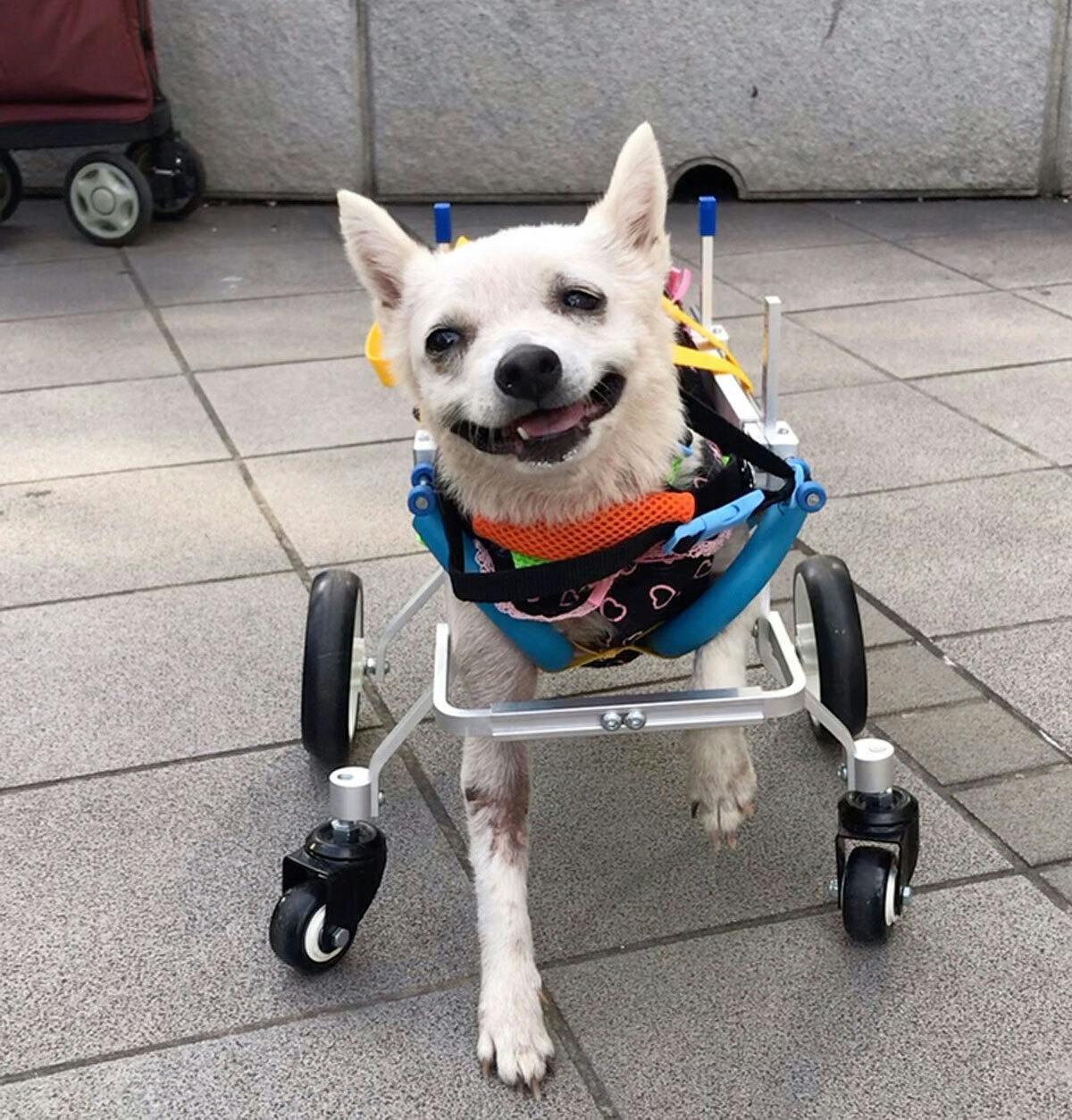 その保護対象は、救助を必要とする動物の中でも、特に、殺処分の決まった子や、事故や虐待に遭った子、老齢、病気や怪我、障害や心の傷を抱えている子など、ほかではもう救うことができないと判断された「最終的な生き場所をなくした子」「私たちが動かなければ確実に命の灯りが消されてしまう子」を多数保護しています。ゆえに、シンボル的存在の水頭症の犬クマちゃん(下写真)をはじめ、同じく水頭症の山吹、前足のない猫のアンちゃん(下写真)などアニマルライフプロジェクトの保護動物は医療機関に定期的に通わないといけない子もたくさんいます。