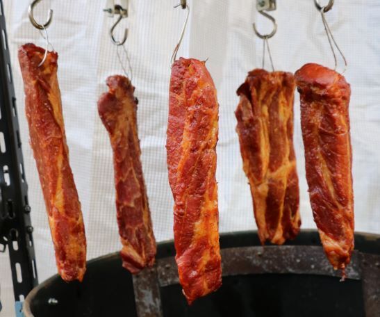 〇真空容器に4日間漬け込んで肉を回転させながら遠赤外線で2時間30分焼いていますので、中まで柔らかくジューシーです。