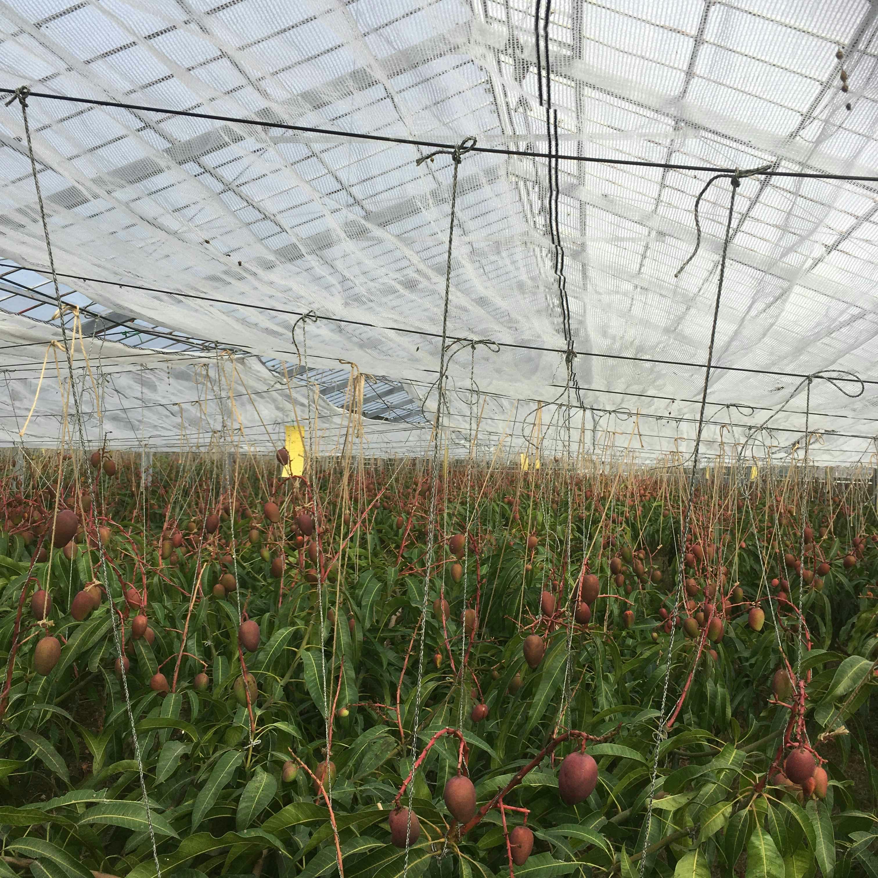 沖縄は梅雨入りを致しまして、梅雨の晴れ間に日焼けをすることが多いので、果実の日焼け防止のためにネットを展張しました。