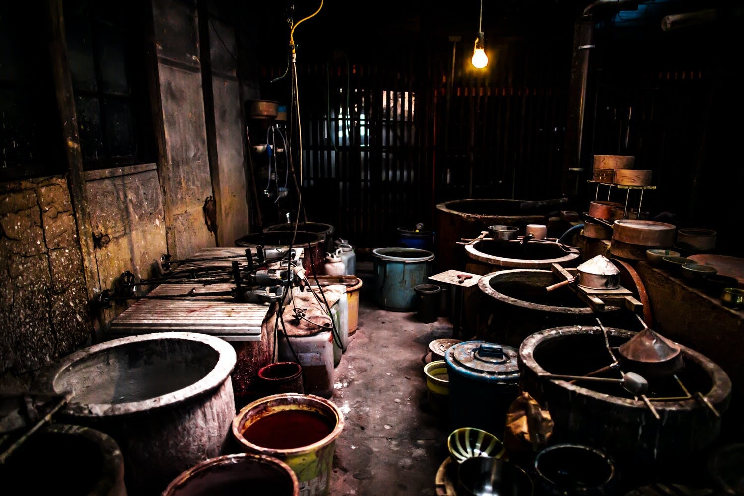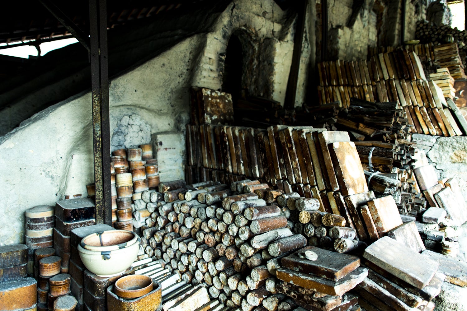 釉薬場。市内で採れる赤松などの木を灰にして釉薬をつくる。