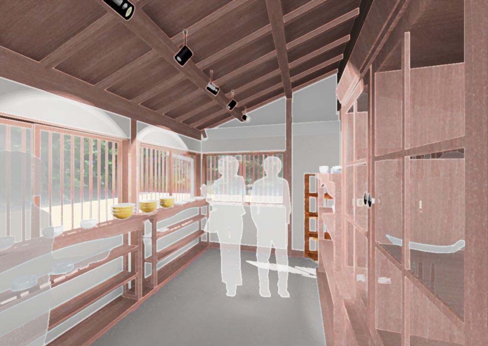 登り窯の隣りには、私たちが働いている工房があります。ものづくりをしている現場の雰囲気を感じていただけるように、その境界線と導線づくりを進めています。釉薬をつくる場所は、実際にご覧いただける予定です。工房の中にはカメラを設置して、リアルタイムの動画を外から見ていただく仕組みも検討しています。