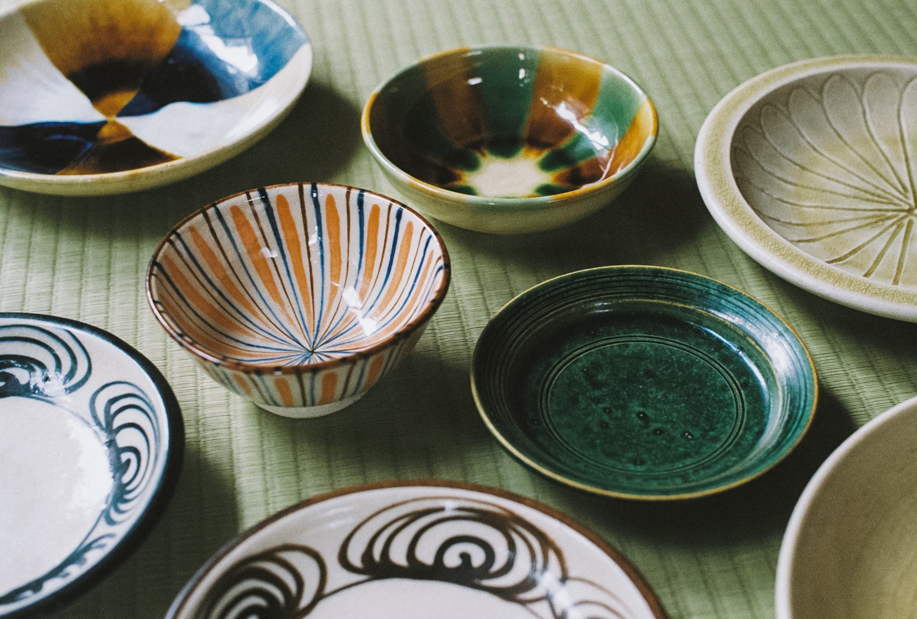 私たちの手がける代表的なやきものは、日常の器である「石皿(いしざら)」「馬の目皿(うまのめざら)」「麦藁手(むぎわらで)」、灯りをともす「行灯皿(あんどんざら)」です。