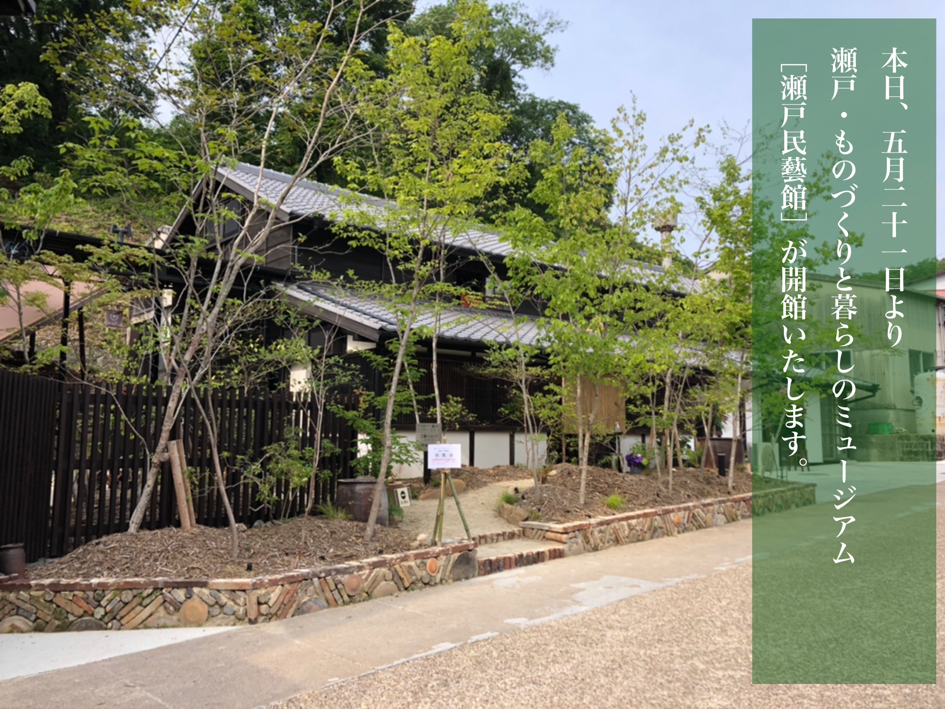 本日、5/21日10:00より瀬戸・ものづくりと暮らしのミュージアム[瀬戸民藝館]が開館いたします!昨年5月に挑戦させていただきましたクラウドファンディングから約1年、ようやくここまで辿り着くことができました。これも皆様のご理解とご支援あってのことと深く感謝申し上げます。オープン当初は混雑も予想され、快適にお過ごしいただくためにいくつかお願いがございます。瀬戸・ものづくりと暮らしのミュージアム瀬戸民藝館 HPhttps://www.setomingeikan-museum.jp【ご支援いただきました皆さまへ】お礼と共に送らせていただきました入場券の引換券を受付にてご提示ください。【駐車場のご案内】駐車場は市街地方向より瀬戸民藝館及び瀬戸本業窯到着約50m手前に専用駐車場(7台)を設けさせていただきましたのでそちらをご利用ください。※瀬戸民藝館正面は道路幅が狭くUターンしづらいため基本タクシーの乗り降りとお体の不自由な方のみとさせていただきます。※満車の場合は約300m西にあります窯垣の小径駐車場(市営無料)をご利用いただき小径を散策しながらお越しくださいませ。Googleマップで(瀬戸民藝館駐車場)とご検索ください。https://goo.gl/maps/Tkj9Lt4T6LcpHMJh6【お買い物のご案内】これまでご利用いただいておりました瀬戸本業窯ギャラリーは瀬戸民藝館内にあります工藝ショップへリニューアル移転しましたのでそちらへお越しくださいませ。【登り窯見学のご案内】これまでは自由に見学していただけましたが今後は瀬戸民藝館内有料区画に含まれますので先に受付が必要となります。【窯横カフェのご案内】瀬戸民藝館改装工事にあわせて臨時休業しておりました窯横カフェは6/10より営業再開さていただくことになりました。ただし、完全予約制とさせていただきますのであらかじめお問合せの上お越しくださいますようお願い申しあげます。【感染対策のご案内】ご来館の際は入口横にありますアルコール消毒とマスク着用をお願いいたします。皆様のご来館心よりお待ち申し上げます!瀬戸本業窯 水野雄介