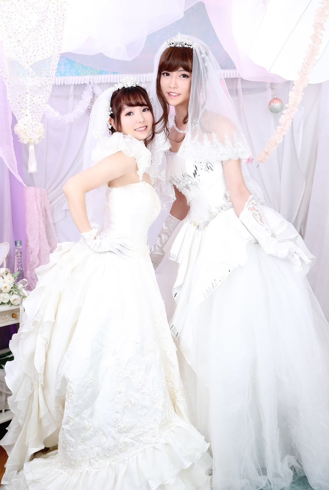 写真は女装と女子会アプリのイメージモデルを引き受けて頂いた、ゴロン族美月さん(左)と麗癒さん(右)
