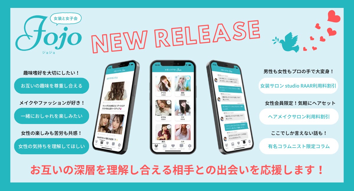 マッチングサイト 女装と女子会「Jojo」が2023年12月8日にリリースされました。
