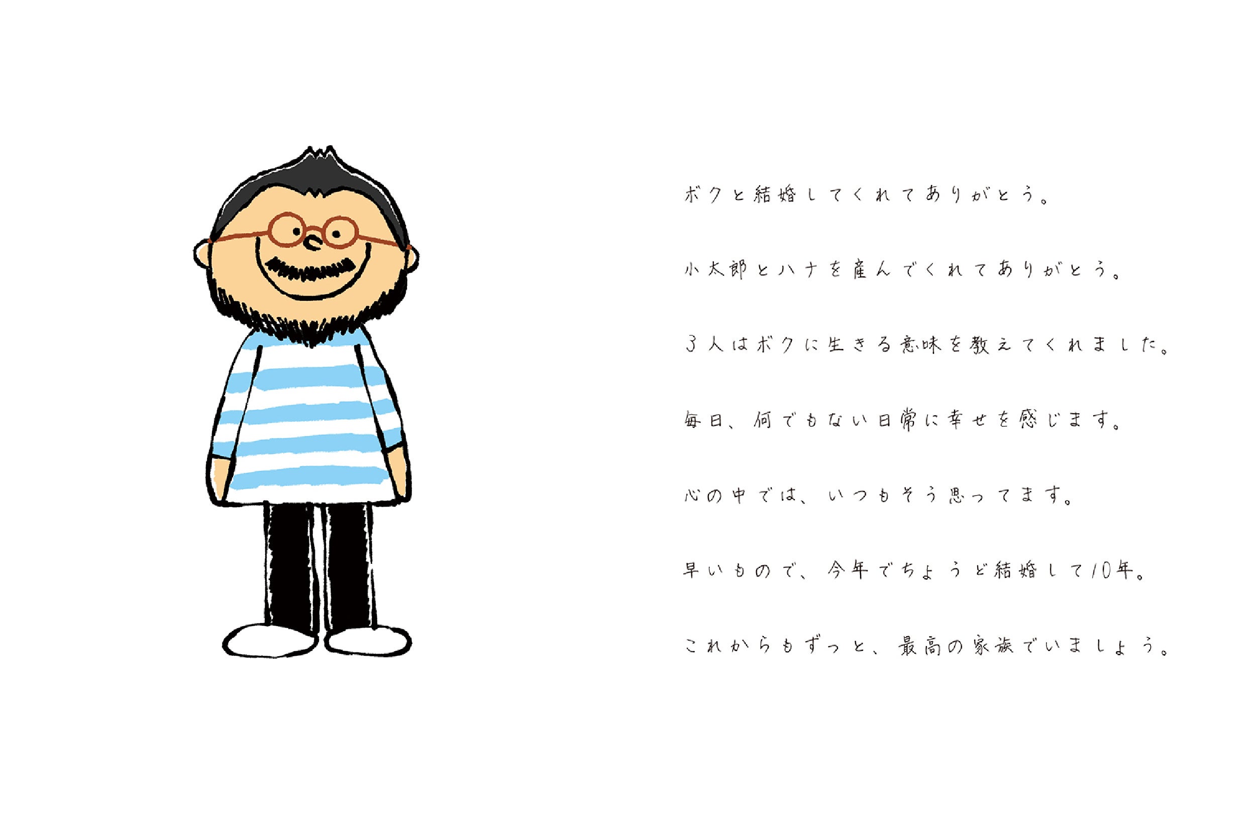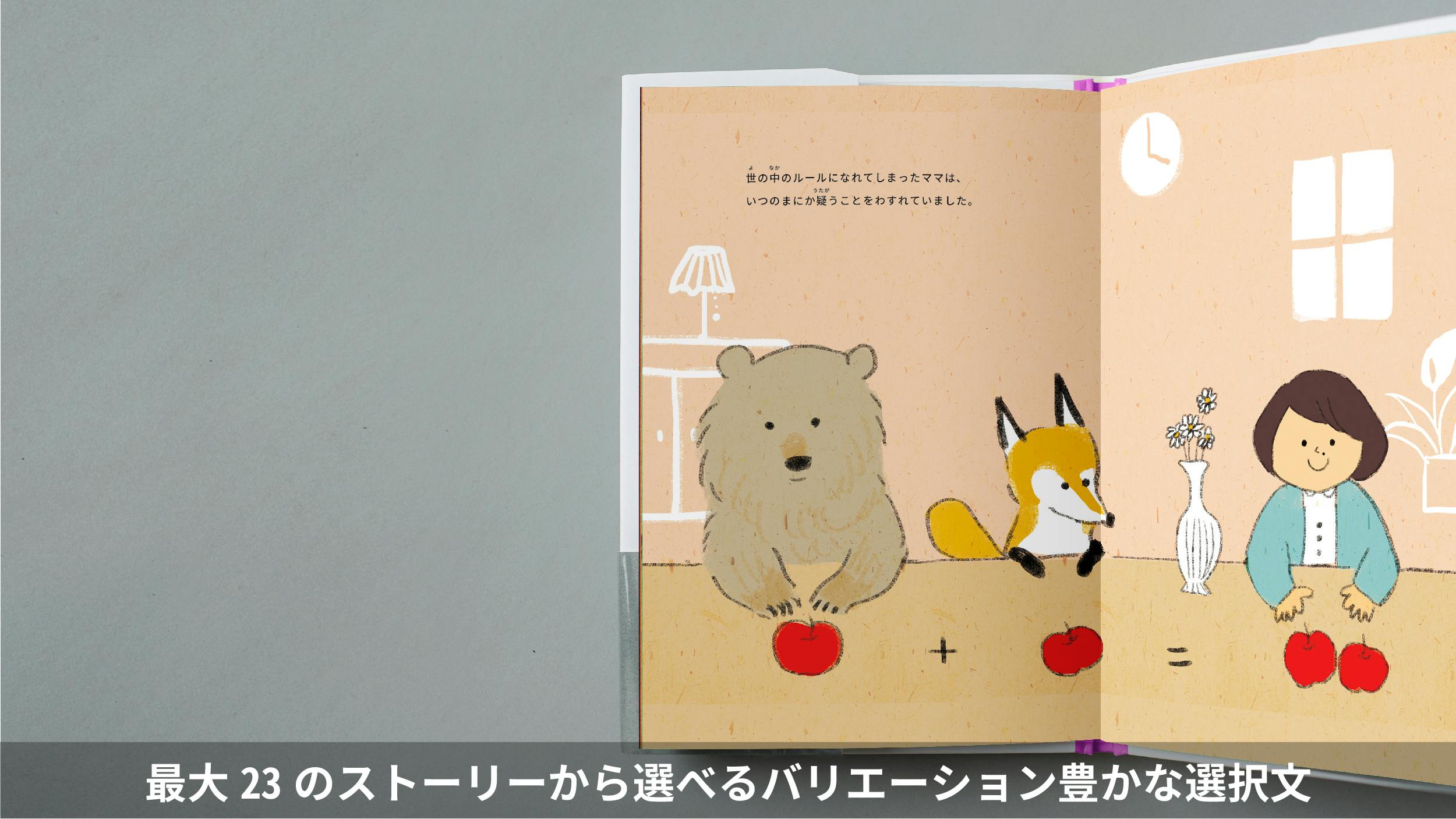 絵文字やLINEスタンプが言葉に上手くニュアンスを与えてくれるように、テキストだけだとちょっと照れくさい内容も、絵本というフォーマットが絶妙な塩梅でごまかしてくれます。
