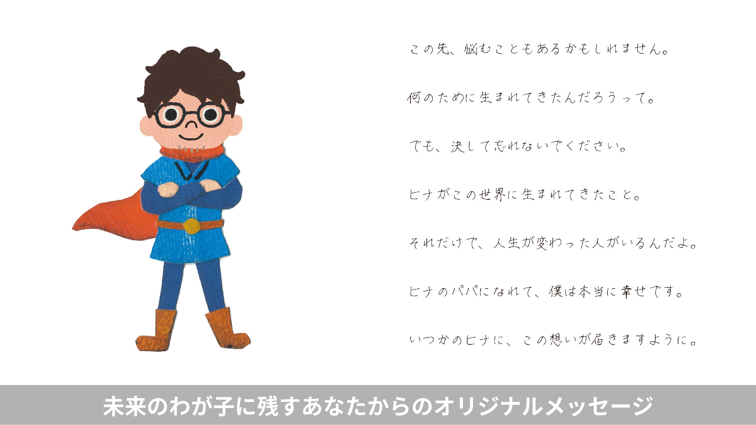 そこで考えたのが、未来のわが子に親の愛を残す、タイムカプセルのような絵本の手紙というコンセプトです。