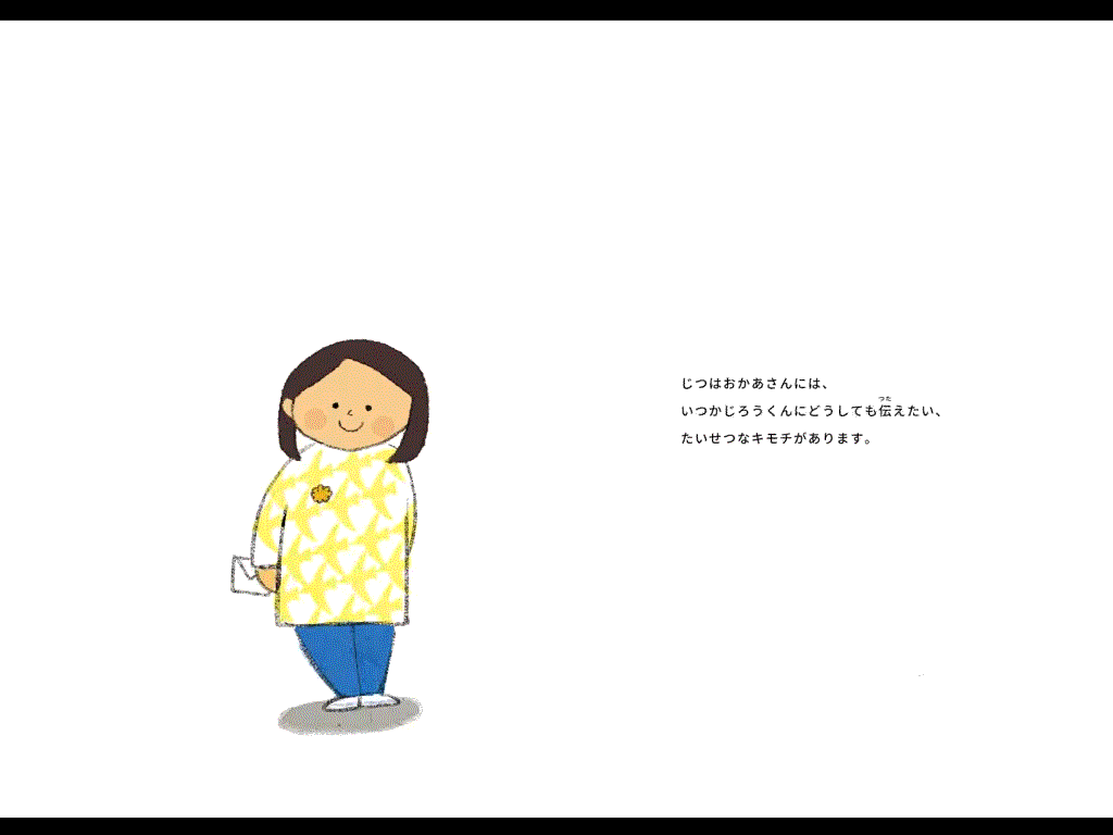 シカケテガミの構成は、定型文 + 選択文 + 自由メッセージの組み合わせになります。残念ながらここで全ストーリーをご紹介するのは難しいのですが、親が子供に贈るシカケテガミのサンプル版をぜひご覧になってみてください。ストーリーラインのイメージをお持ちいただけるのではないかと思います。