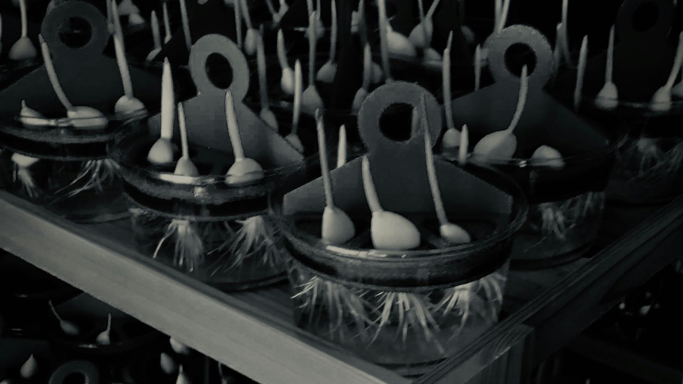 これらの知見を元に、室内で水耕栽培が手軽にできる装置を開発し、日本初となる発芽ニンニクを使った黒ニンニクの製法特許をHirofumiさんは取得しました。
