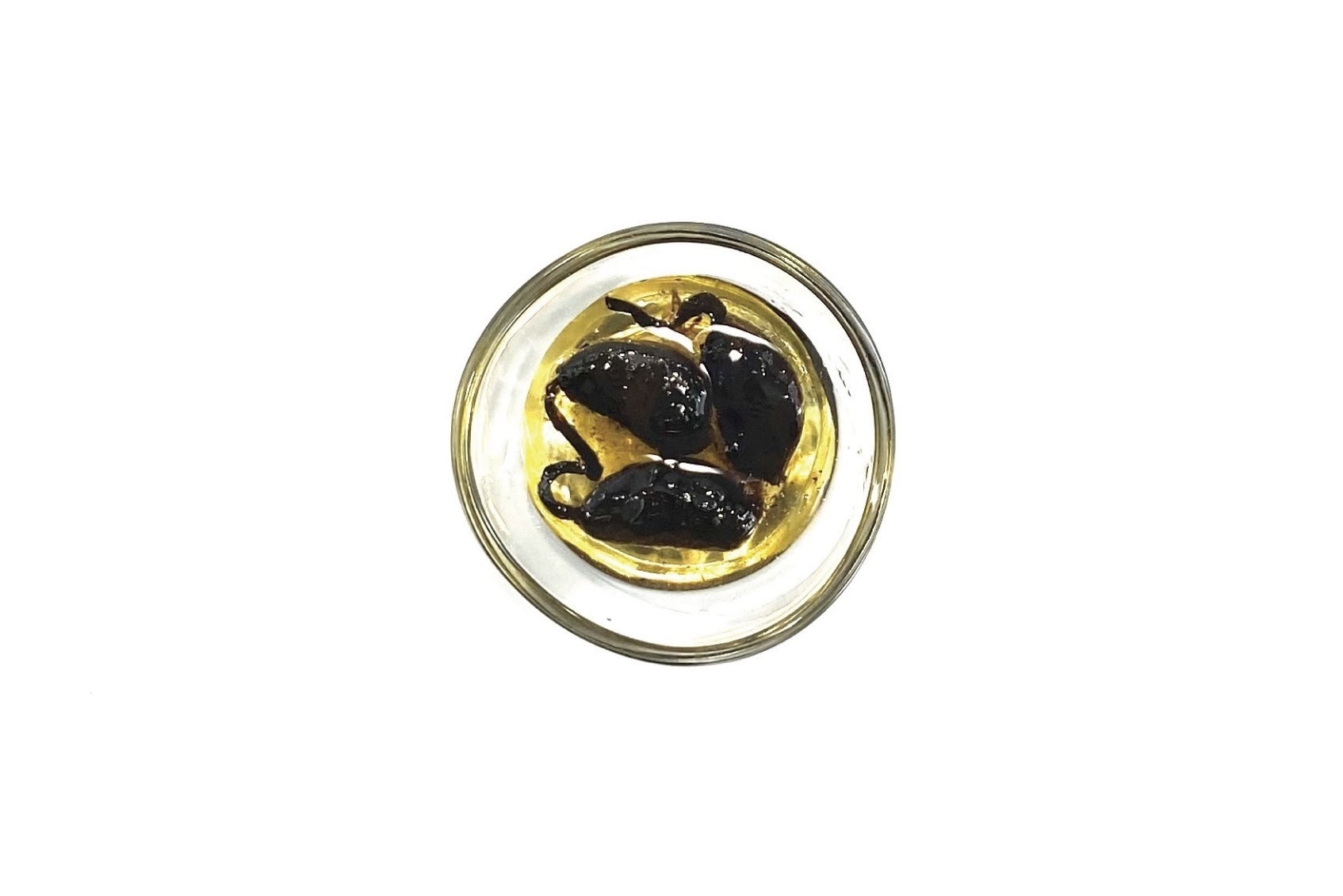 “発芽熟成黒ニンニク”をオリーブオイルに漬けました。