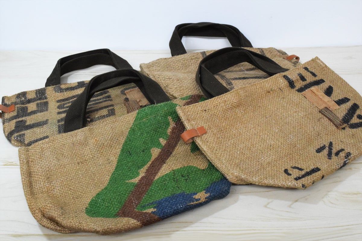コーヒーの生豆の運搬に使われる麻袋のことで、丈夫で破れにくく通気性に優れているためコーヒーの変質を防ぎやすいのが大きな特長です。