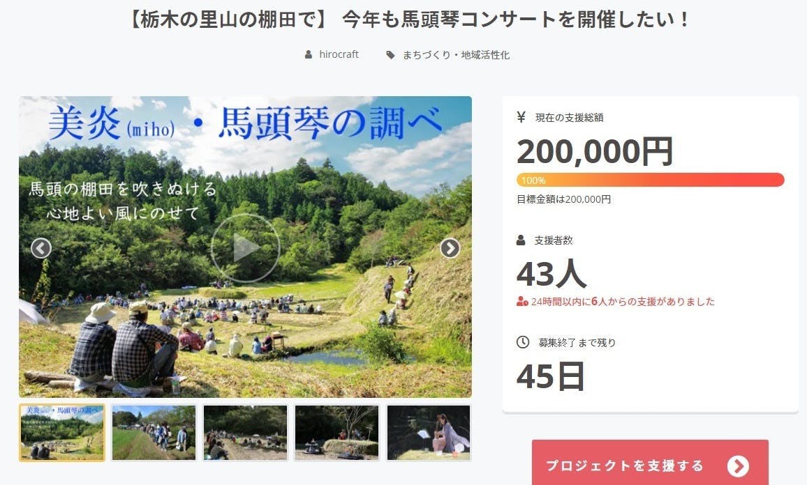 【コンサートご予約優先権コース】の限定数にはまだ空きがございますので、棚田でのコンサートにご参加希望の方は、リターンの説明をお読みの上ご支援いただけると幸いです。