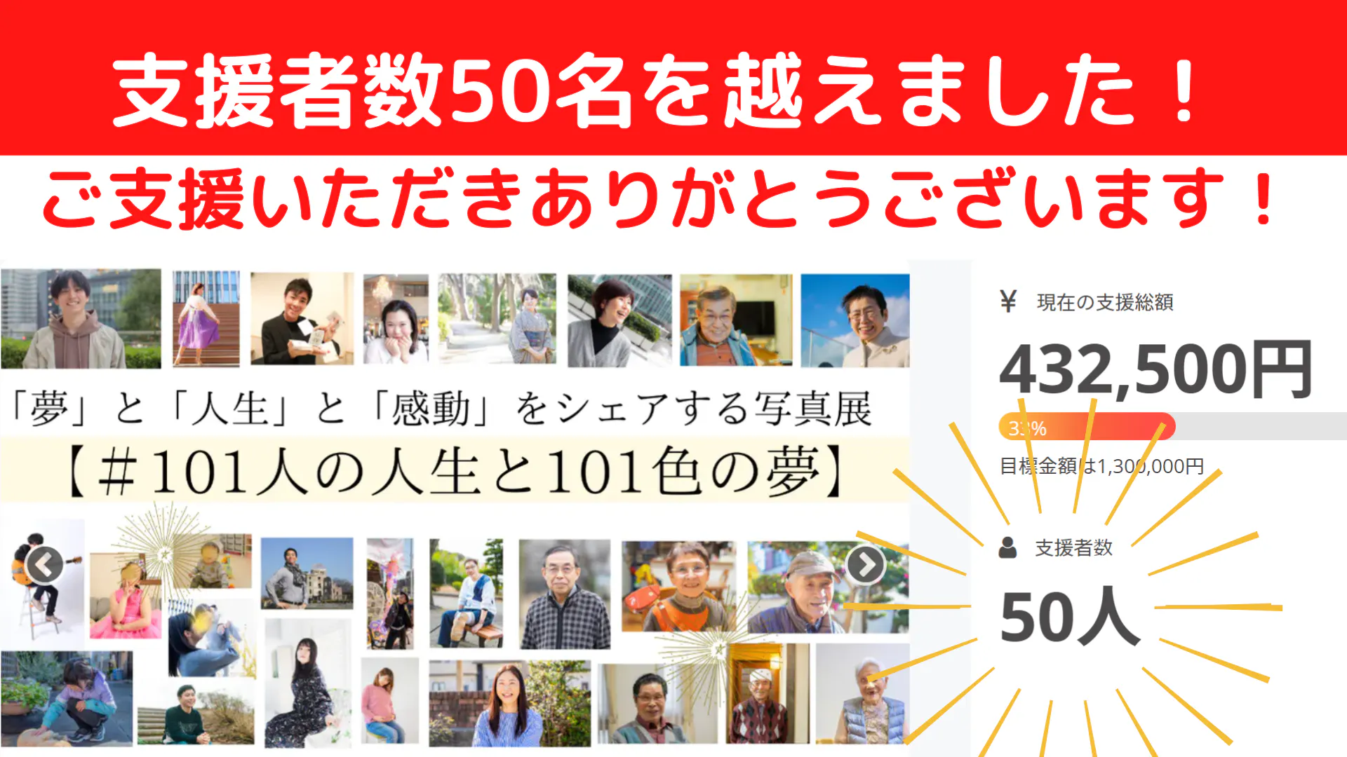 支援者数が50名を越えました!