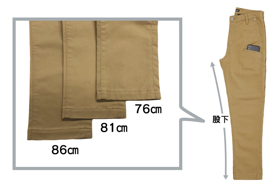 股下が 76cm、81cm、86cm の3つから選んで頂けるようになりました!