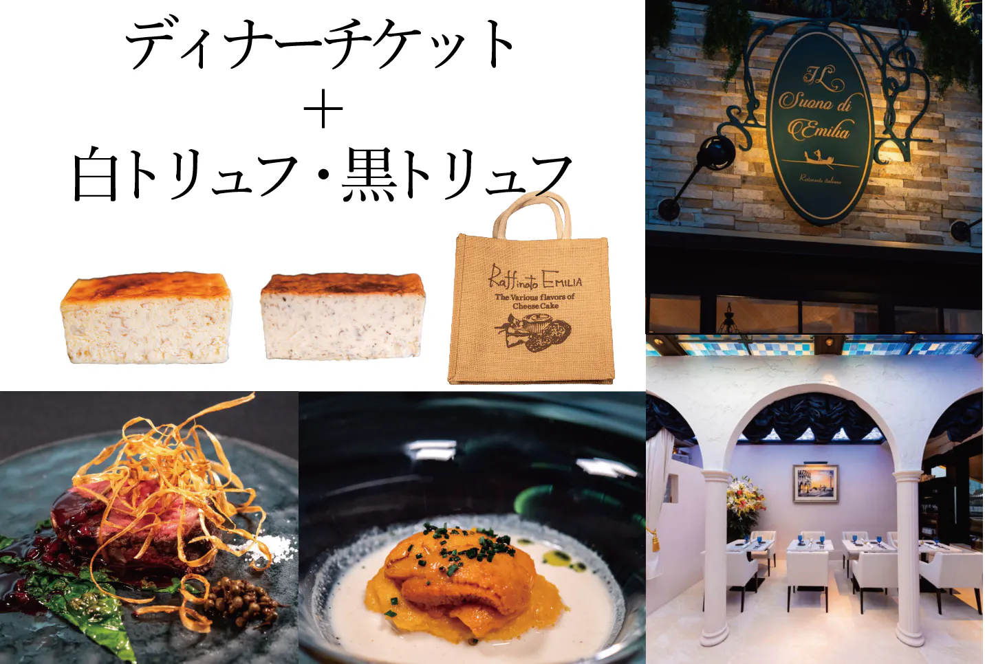 当レストランの¥15,000コース×2名様分のチケット+白黒トリュフチーズケーキ2種