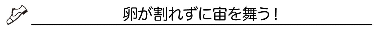 R-TECHの上に卵を落とすと卵が割れずに上に跳ね上がります。この高反発によって、歩行時の踏み出し時にスムーズに足が前に出てくれて、歩行のサポートをしてくれます。