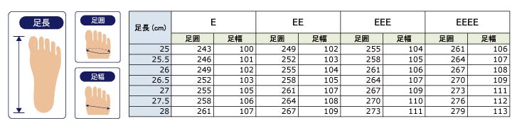 ※上記サイズ表は目安です。EEEEの欄をご参考にしてください。