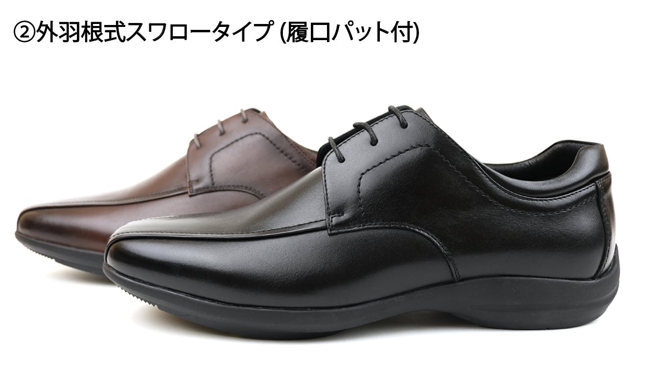 つま先に伸びるラインがおしゃれな外羽根式スワロータイプ