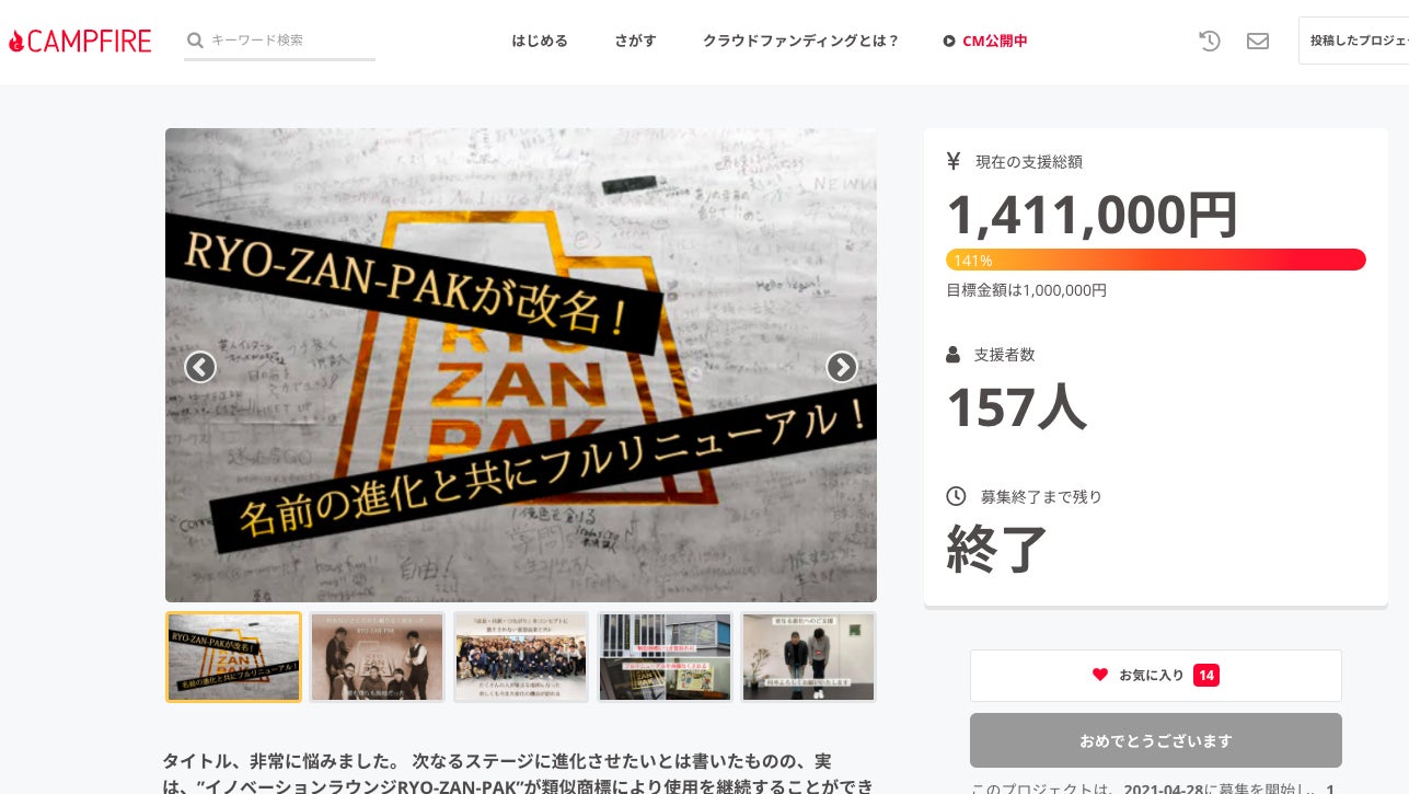 皆様のおかげで本プロジェクトは大成功にて終了することができました。