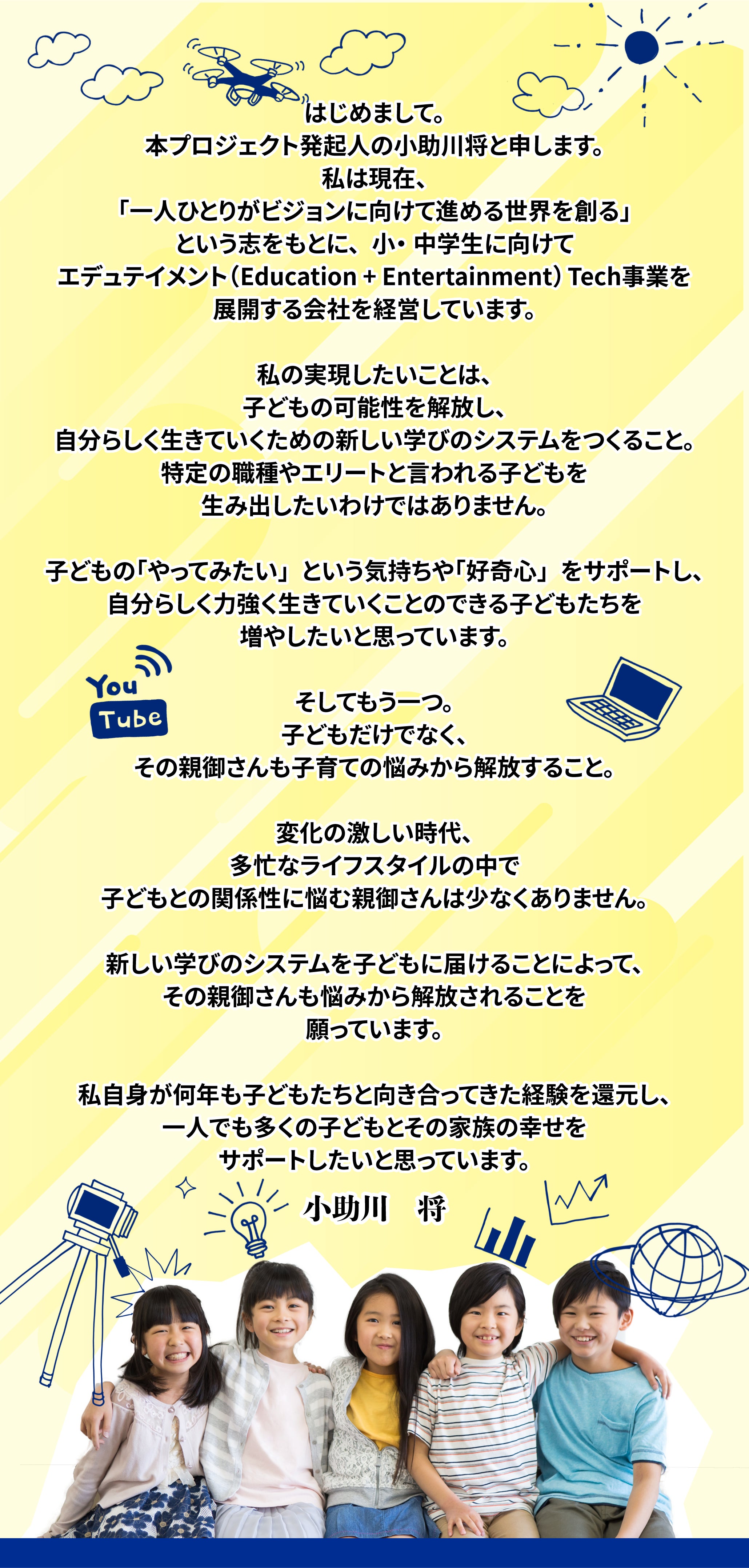 未来をつくっていく子どもたちの幸せのために、このプロジェクトを必ず成功させたいと思っています。