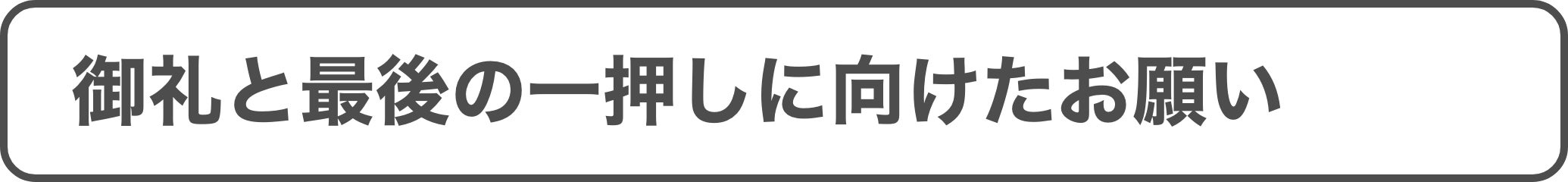 最終日まで、諦めずに頑張りますので、引き続きのご協力・ご支援のほど、どうかよろしくお願いいたします。