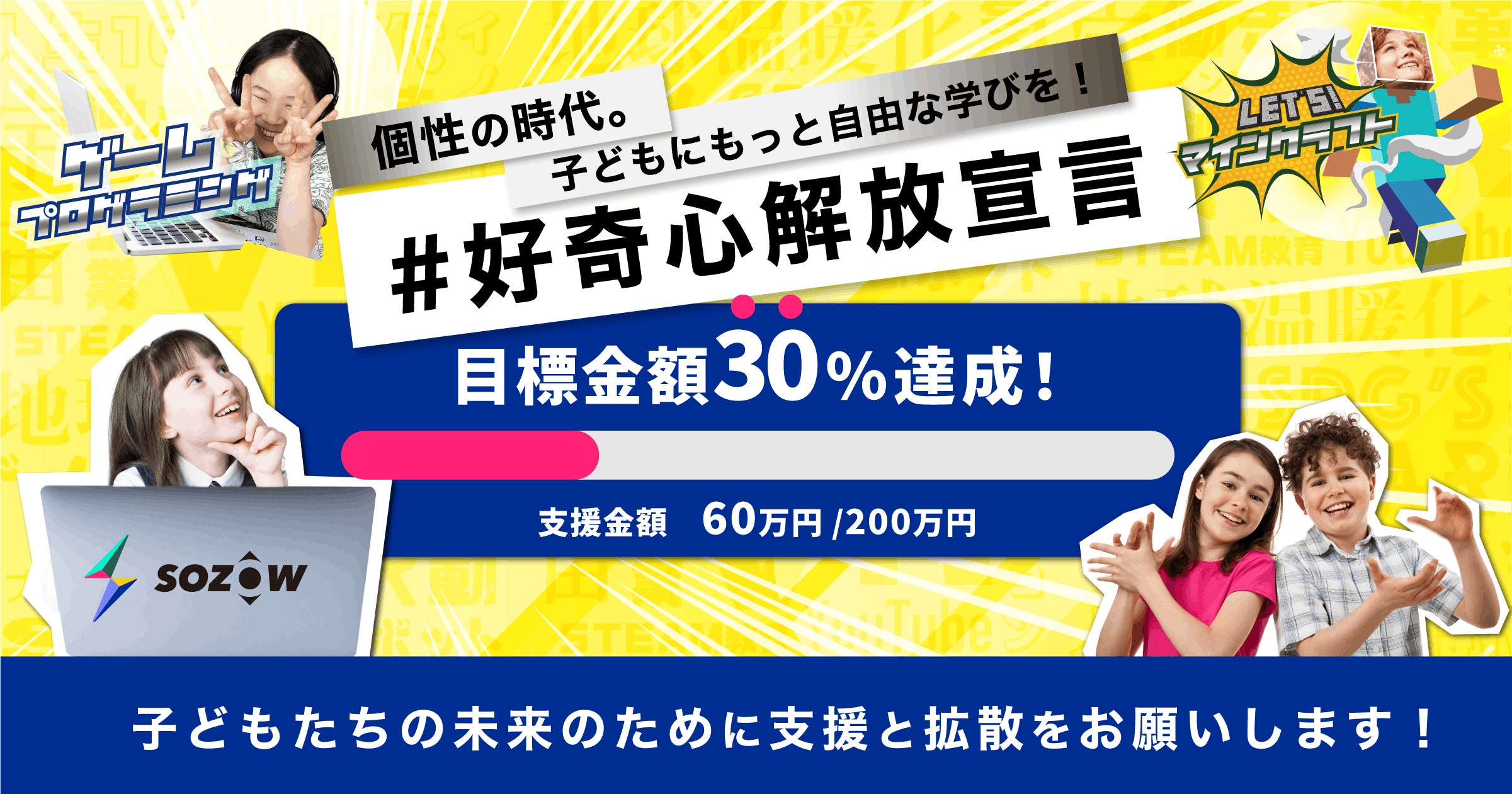 また、このクラウドファンディングをきっかけとして、弊社の想いに共感してくださったそうそうたる皆さんが「SOZOW応援団」として子どもの好奇心・可能性を広げていく仲間になってくださっています!とても心強いとともに、なんとしてもやっていくという気持ちがどんどん強くなり、身が引き締まる想いです!