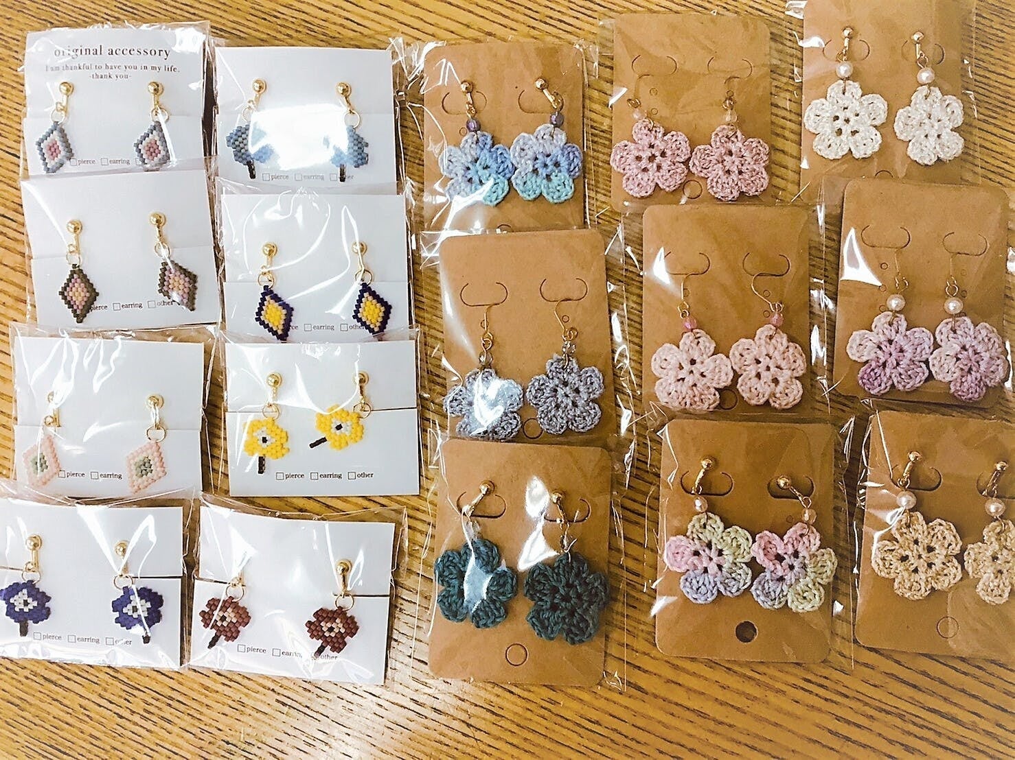 WAIWAI手芸部のママたちが手作りした 色鮮やかなアクセサリーや可愛いヘアゴムなど。