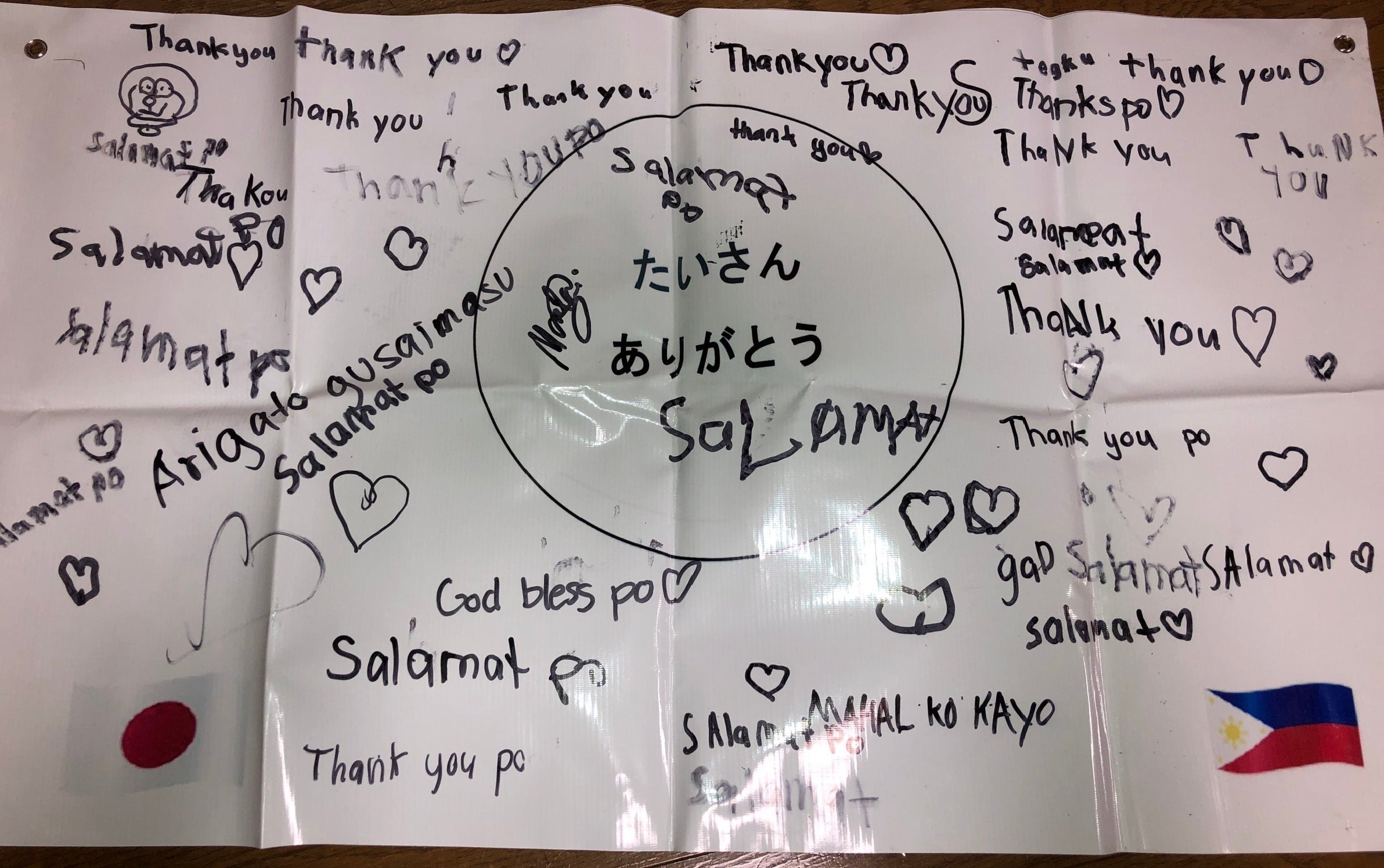 日本から届いた文房具の一部『フィリピンの子供達からのお礼の寄せ書き』