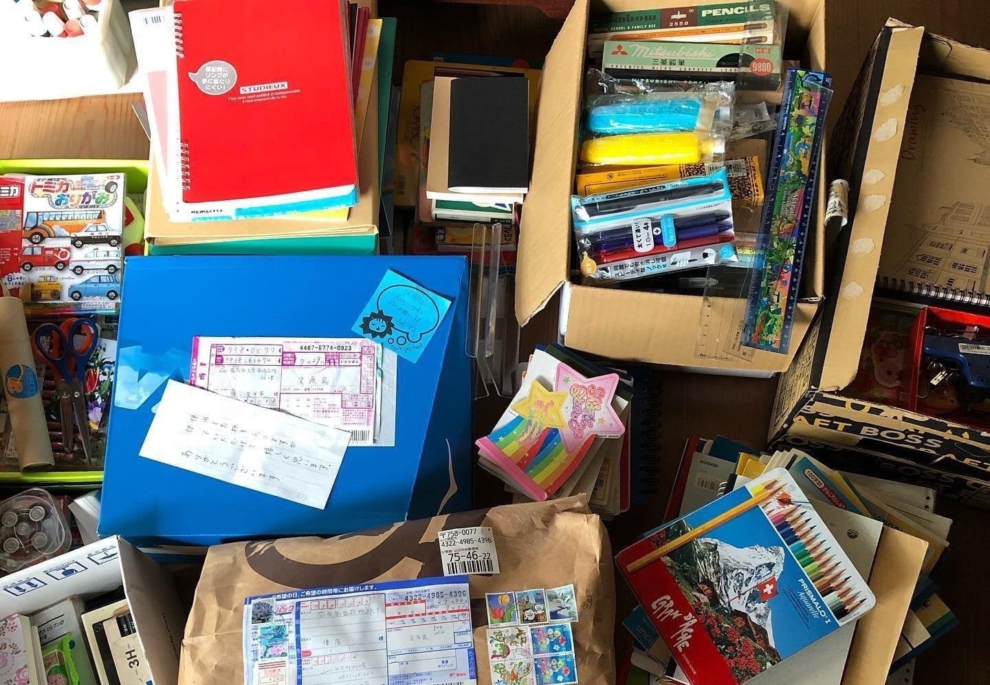 今年も日本からの文房具品を大量に送る準備をしております。