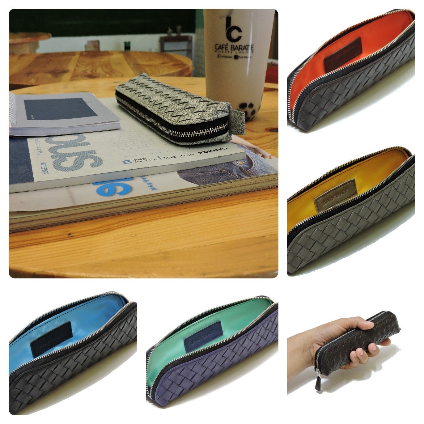 羊革を編み込みエレガントな有りそうで無いメッシュペンケース