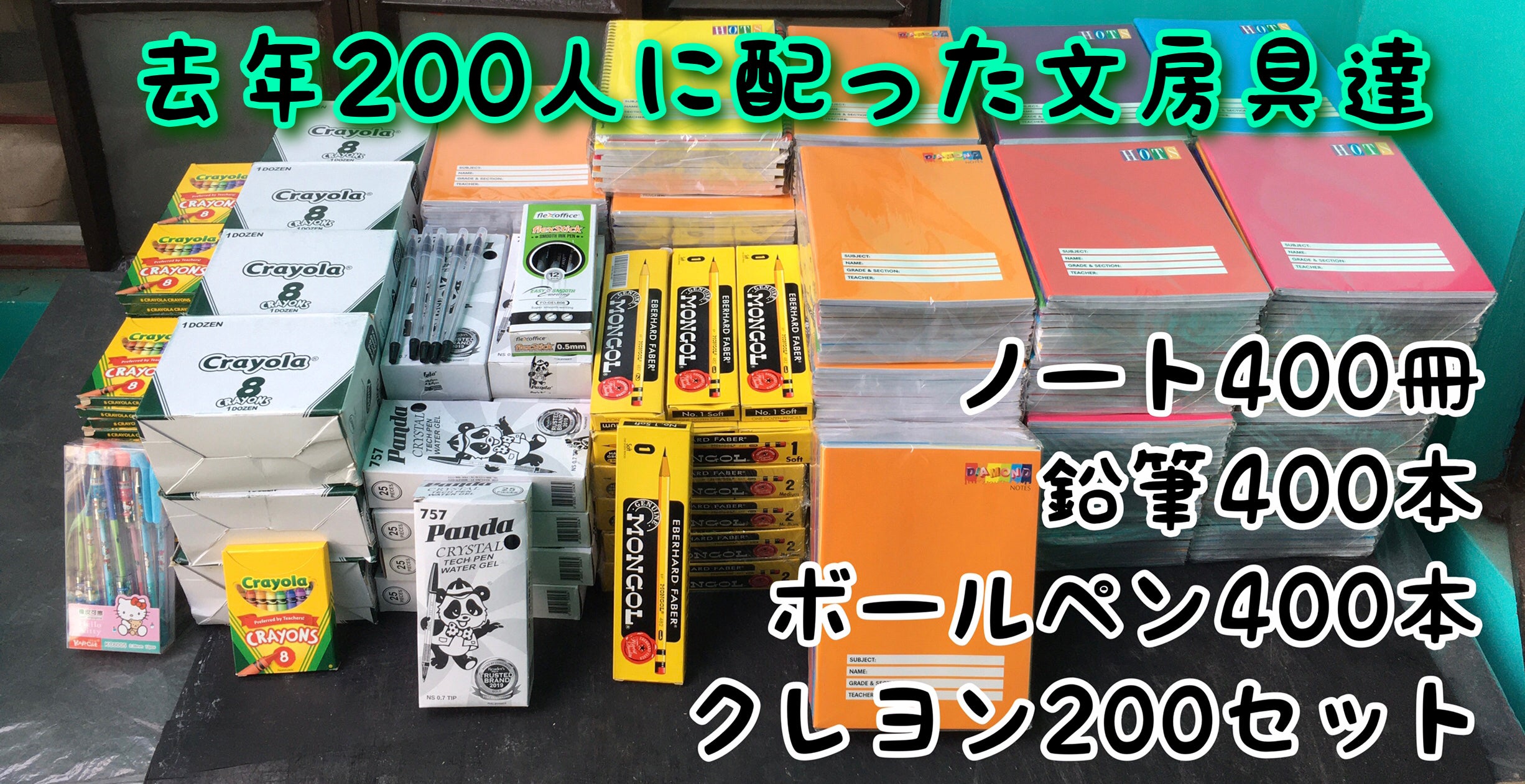 昨年支援頂いた200人分の文房具
