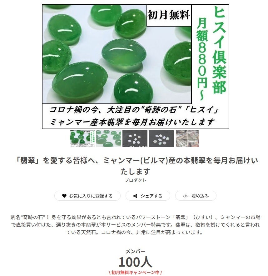 今回のリターンでお送りさせていただく翡翠が毎月届くコミュニティです。