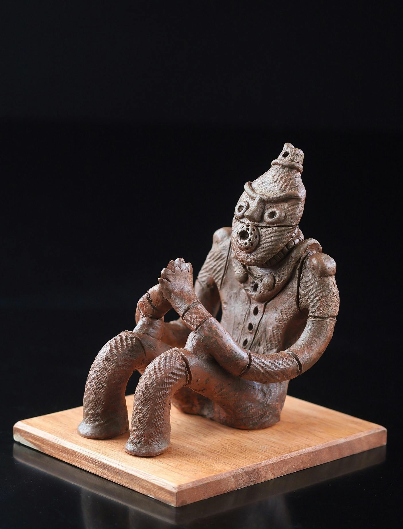 オリジナル商品の制作過程・土偶なども制作しています。(写真は6㎝遮光器土偶。七輪で炭火焼。)