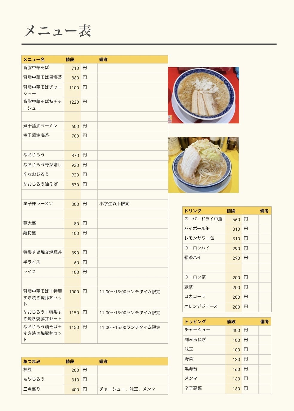 オープン前に仮で作成したものになるため、値段設定等、グランドオープン後に多少変更する場合がございます。予めご了承くださいませ。