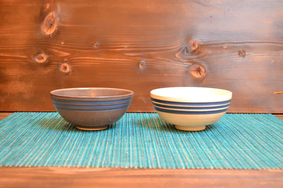 どちらの茶碗にも濃青の3本ラインを入れており、