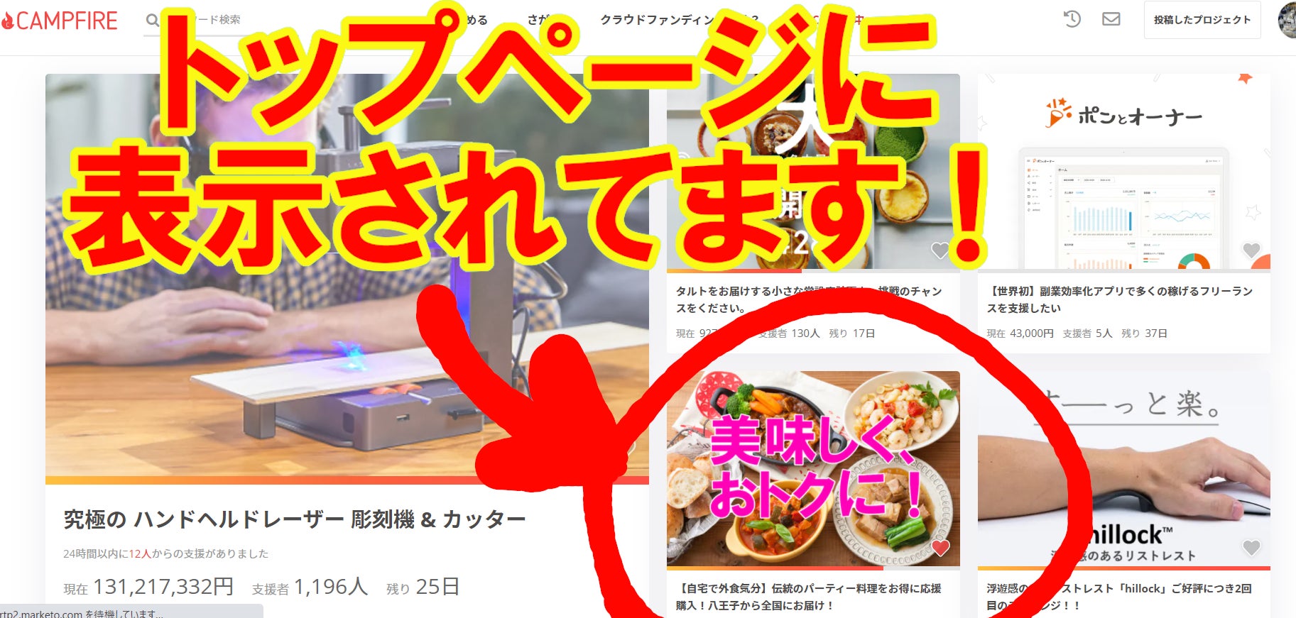 本日よりCAMPFIREトップページに掲載されております。