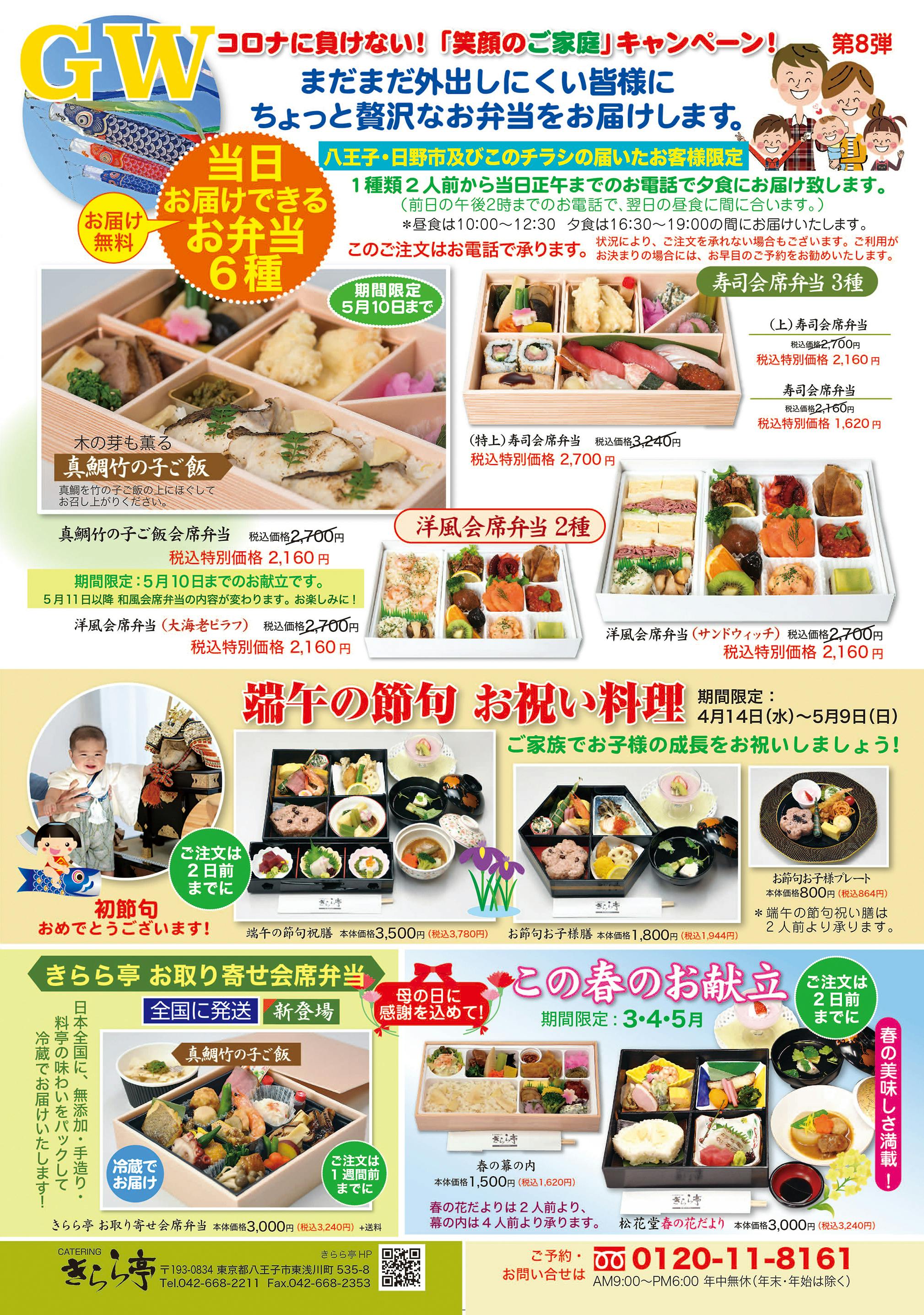 そんな中で、5/5前後には端午の節句のお祝いや、GW期間中のご自宅でのお食事にきらら亭をご利用いただけるお客様が本当にたくさんいらっしゃり大変有難く存じます。