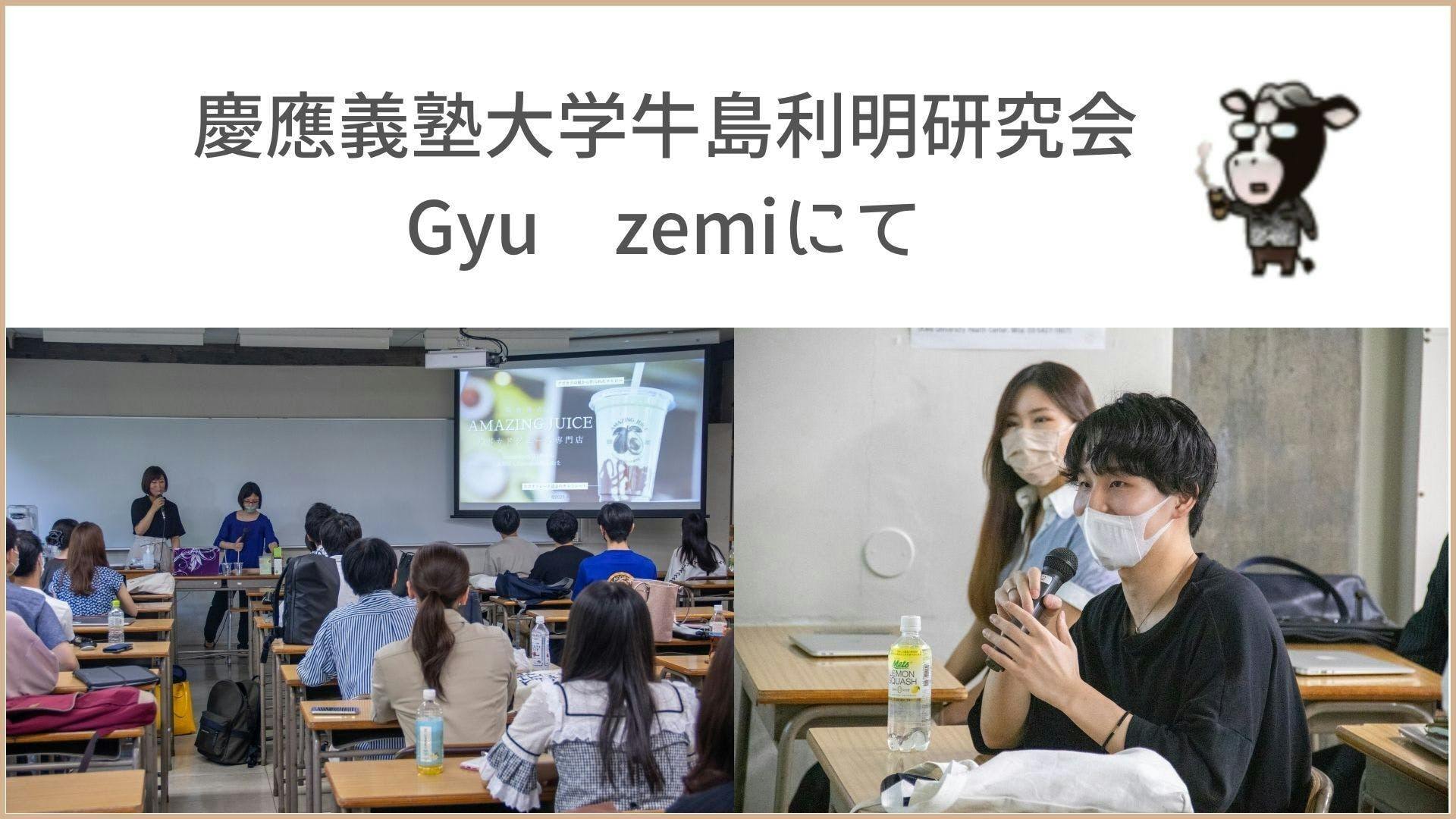 最近では、慶應義塾大学商学部の牛島教授にお声がけいただき、ゼミにて私たちの出会いから事業立ち上げまでのお話や、「新ブランドAMAZING JUICEの店主になったら」というワークワークショップを行わせていただきました。