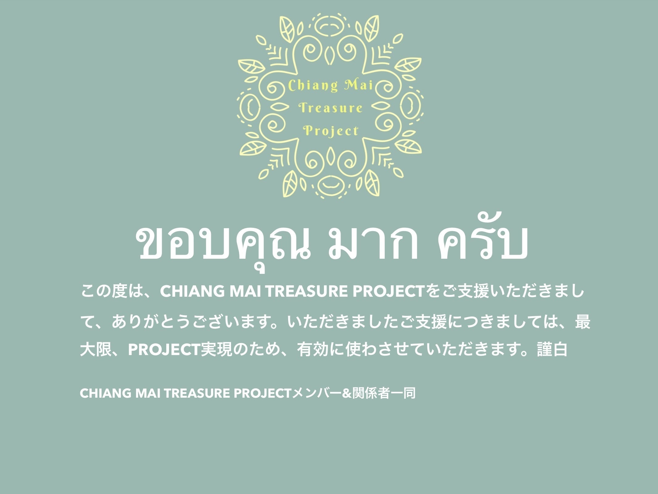 CHIANG MAI TREASURE PROJECTをご支援いただきましてありがとうございました