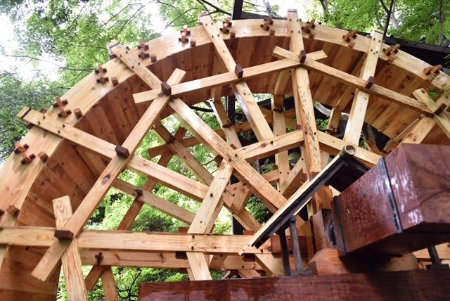 トップの写真に上げたような、水車など伝統的なものや店舗、家具など数多く手掛けておられます。