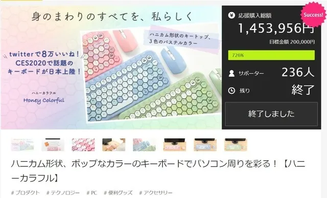 シリーズの第1弾である「ハニーカラフル」は国内クラウドファンディングで達成率700%越え、支援人数236人を集め、多くの反響をいただきました。