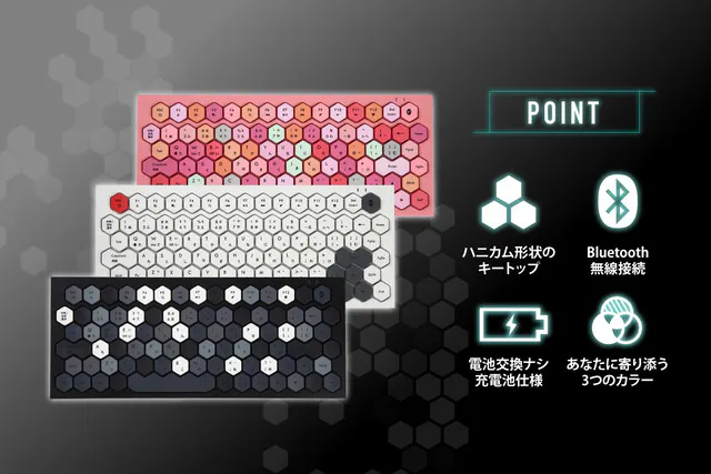 ハニカム形状のキートップを採用したオリジナルのキーボードです。