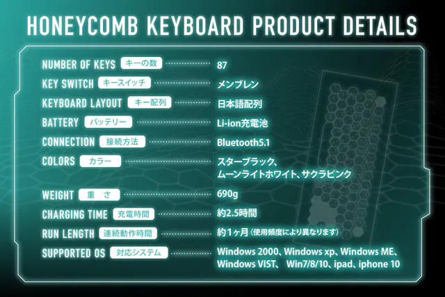 ハニカム型のキーボードが日本のユーザーにインパクトを与えることができれば幸いです。